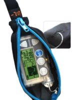 Insulīna sūkņa somiņa ar rāvējslēdzēju un iestrādātu caurumu infūzijas sistēmai, jostas daļā regulējama.